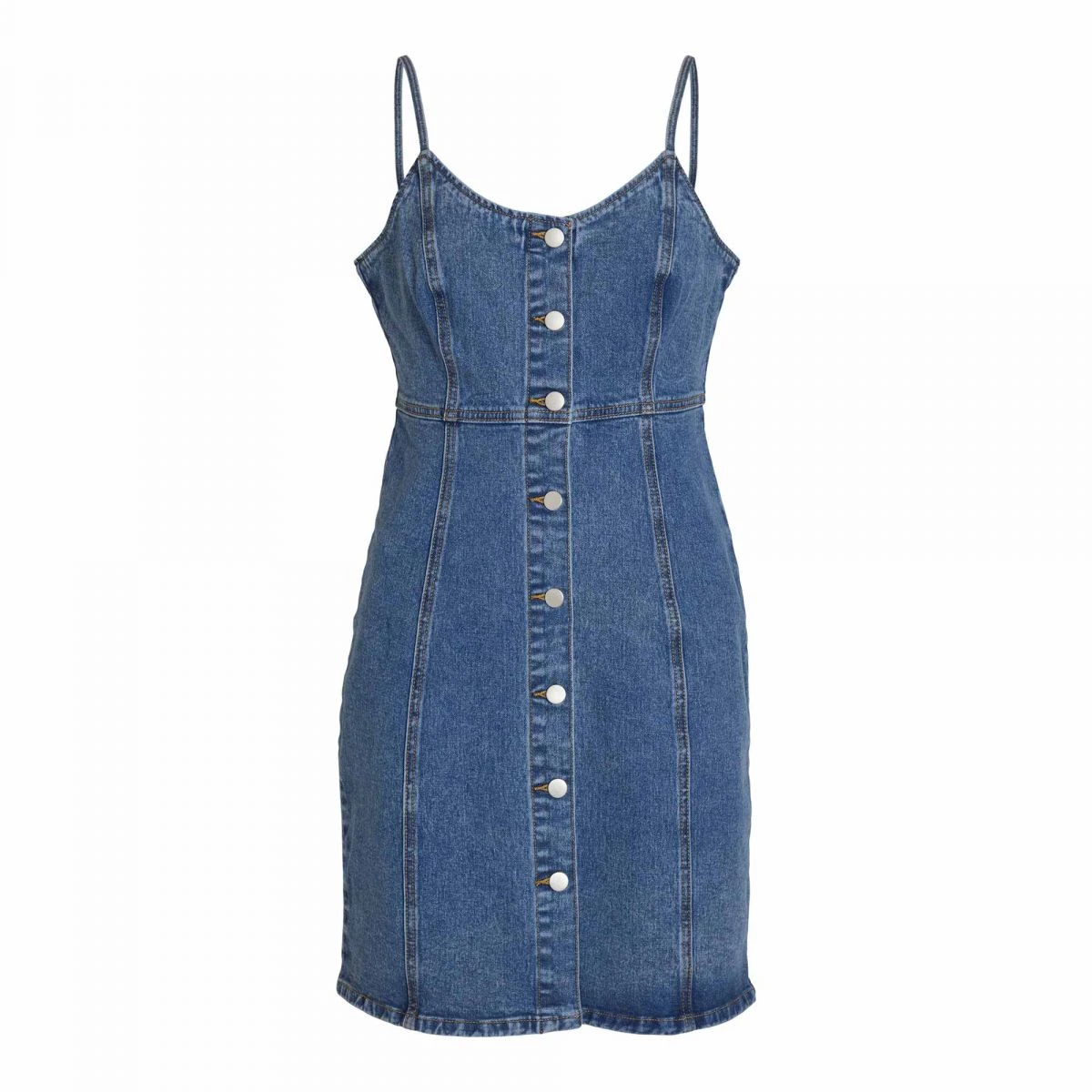 Dégriffstock vous propose cette robe à bretelles en jean boutonnée coton stretch pour femme de la marque VILA à prix dégriffé.