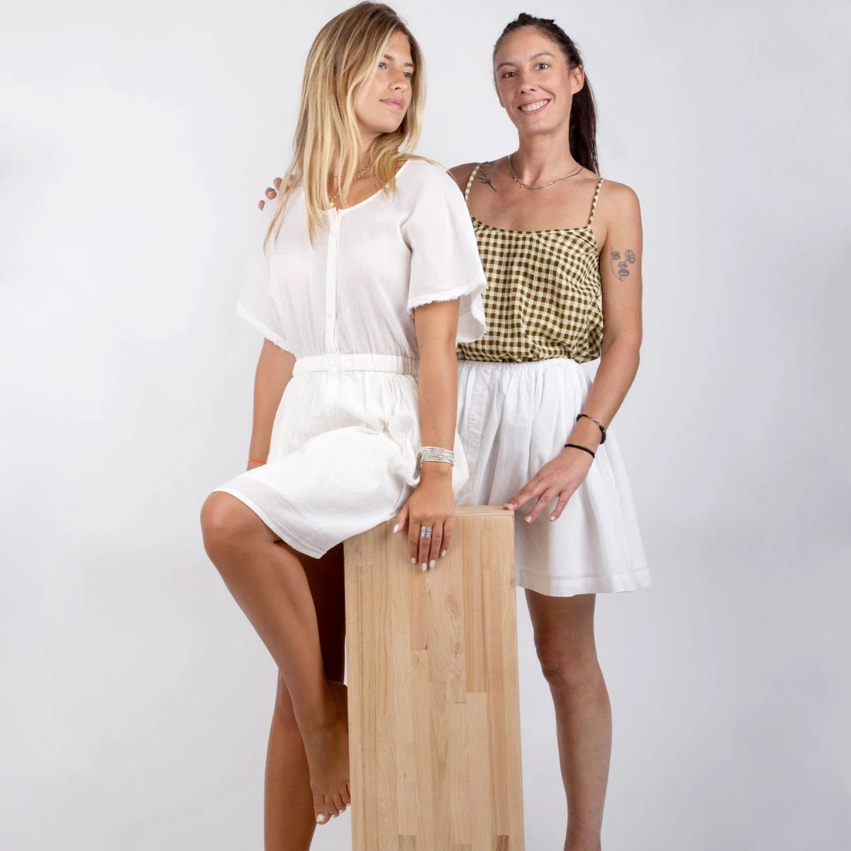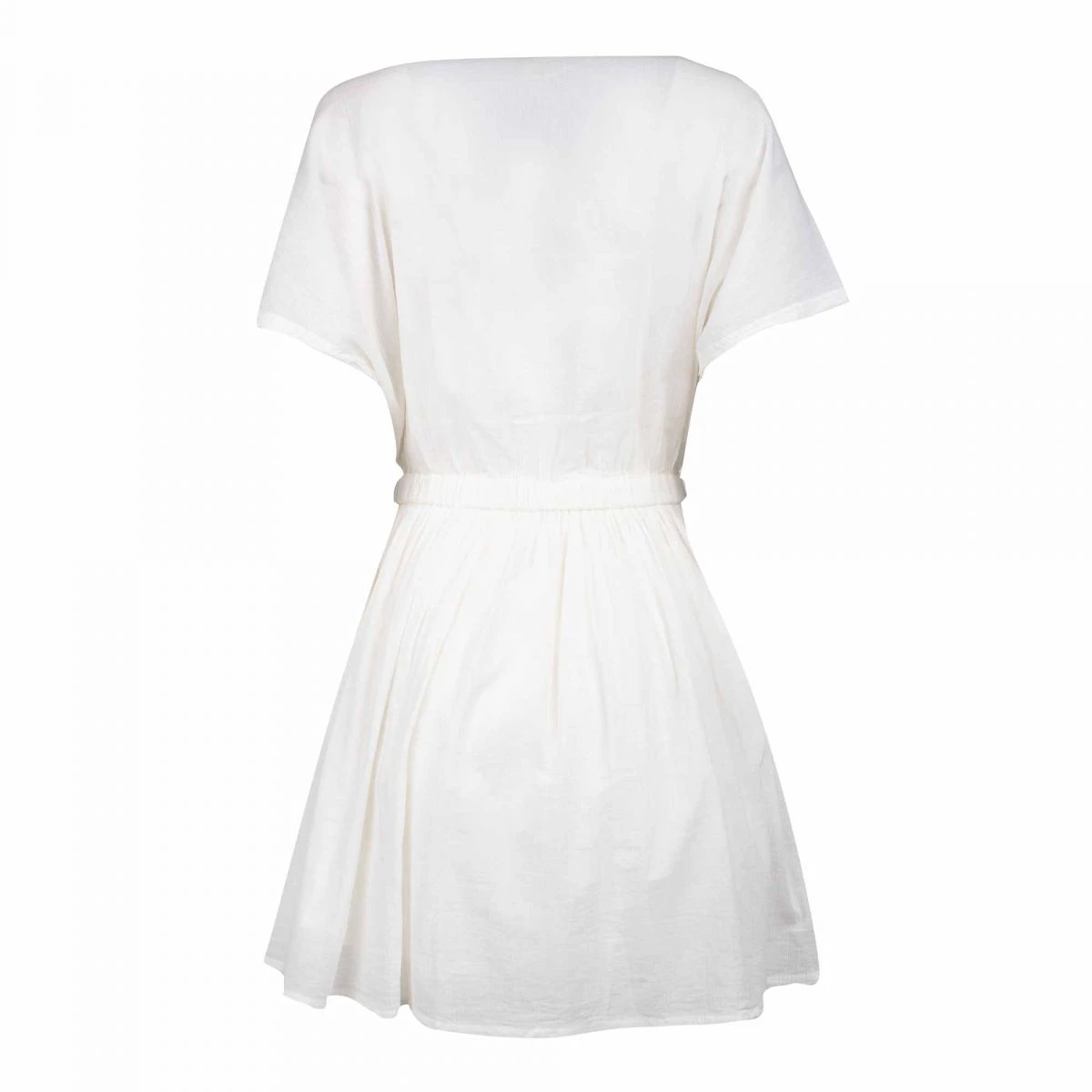 Dégriffstock vous propose cette robe blanche manches courtes évasée en coton pour femme de la marque AMERICAN VINTAGE à prix dégriffé.