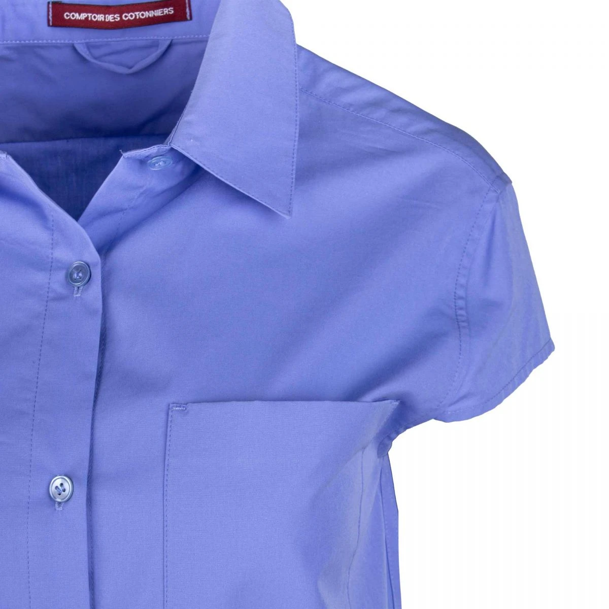 Dégriffstock vous propose cette robe chemise droite manches courtes longueur au-dessus du genou avec lien de serrage à la taille coton pour femme de la marque COMPTOIR DES COTONNIERS à prix dégriffé.