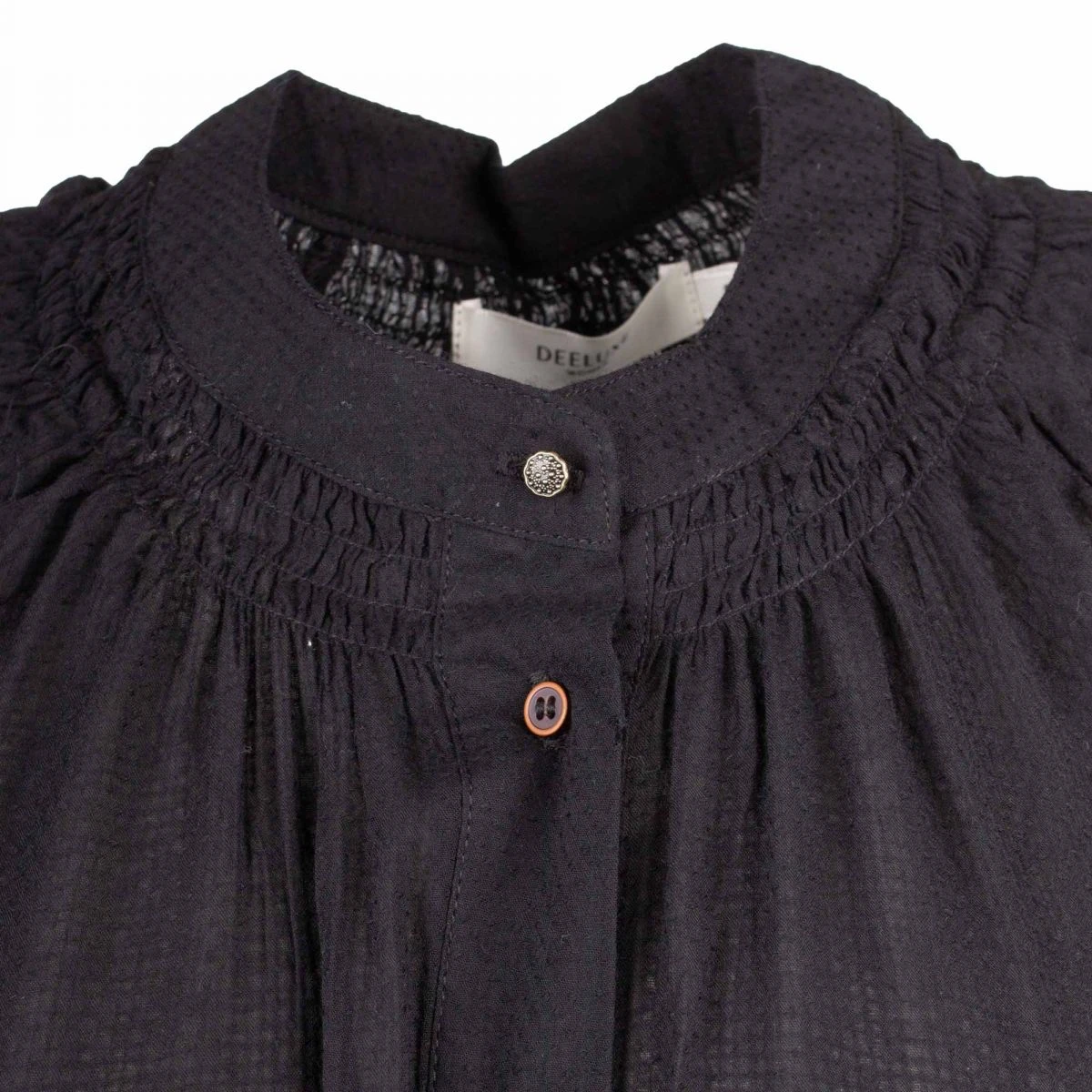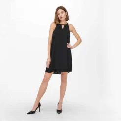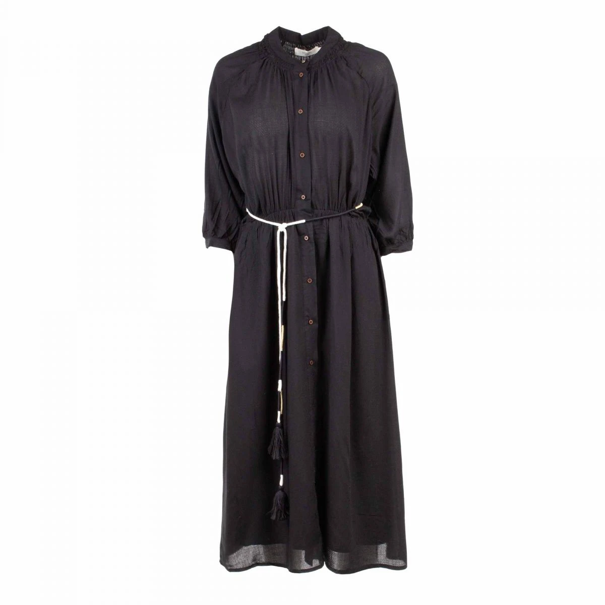 Dégriffstock vous propose cette Robe col cheminée longue manches 7/8 avec lien de serrage noire pour femme de la marque DEELUXE 74 à prix dégriffé.