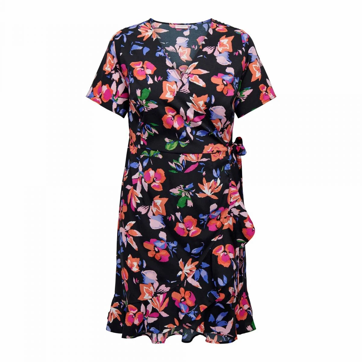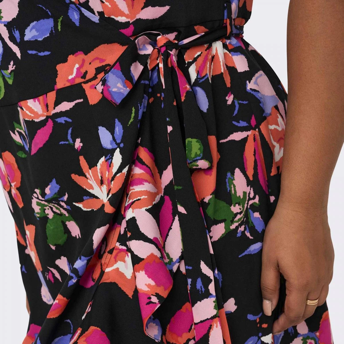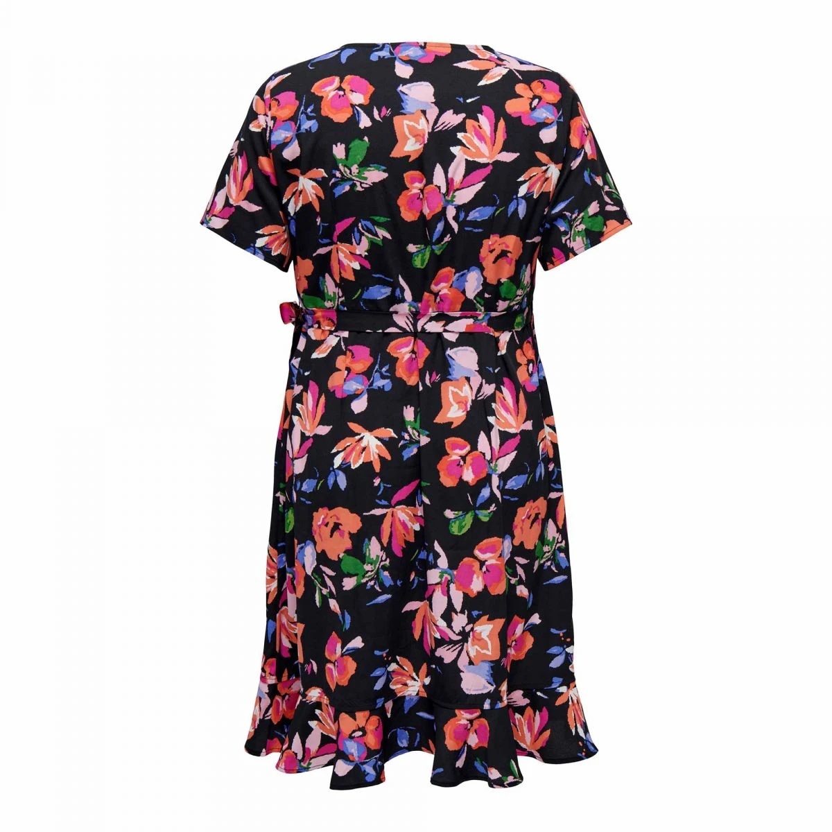 Dégriffstock vous propose cette robe courte cache-coeur volants ceinture imprimé pour femme de la marque ONLY CARMAKOMA à prix dégriffé.