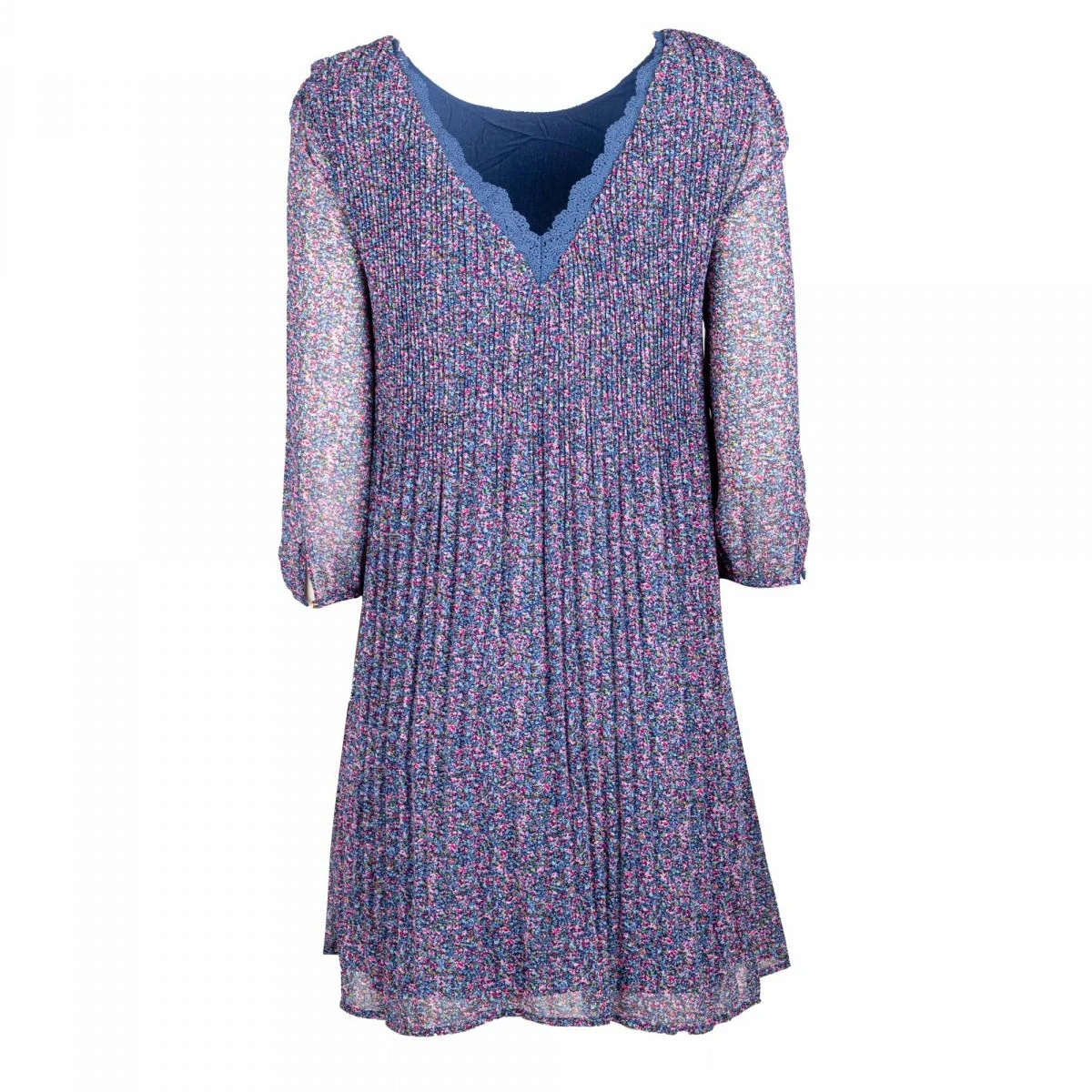 Dégriffstock vous propose cette Robe courte manches 3/4 fleurs dos col V rejane Femme de la marque LA PETITE ETOILE à prix dégriffé.