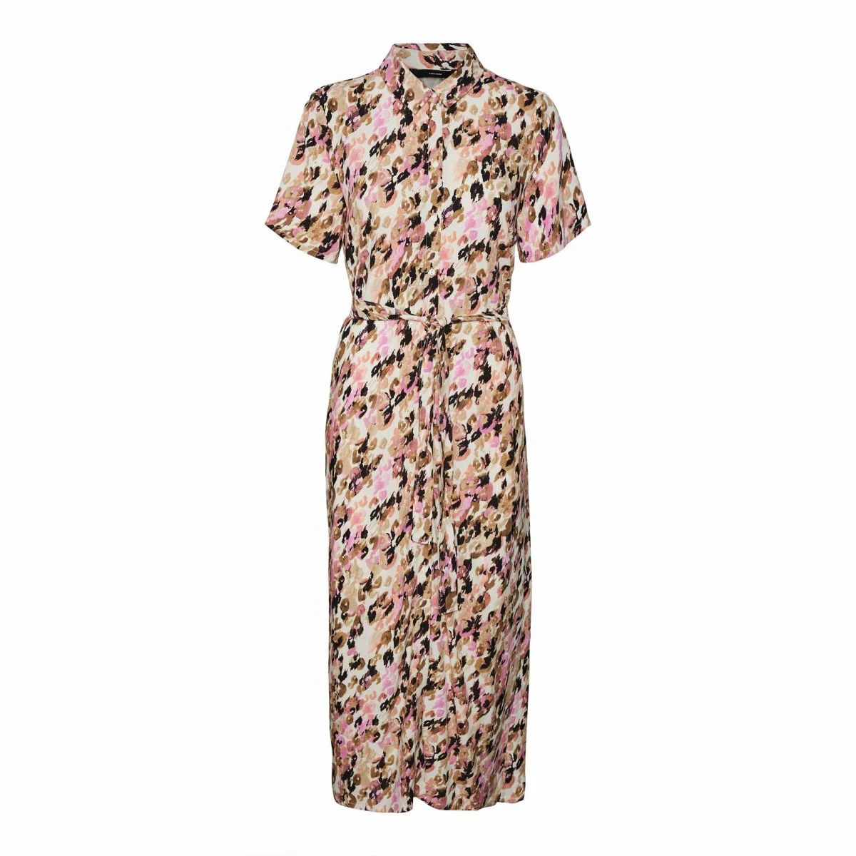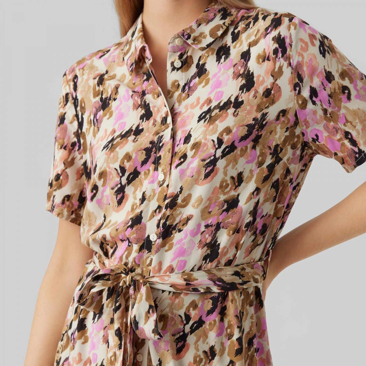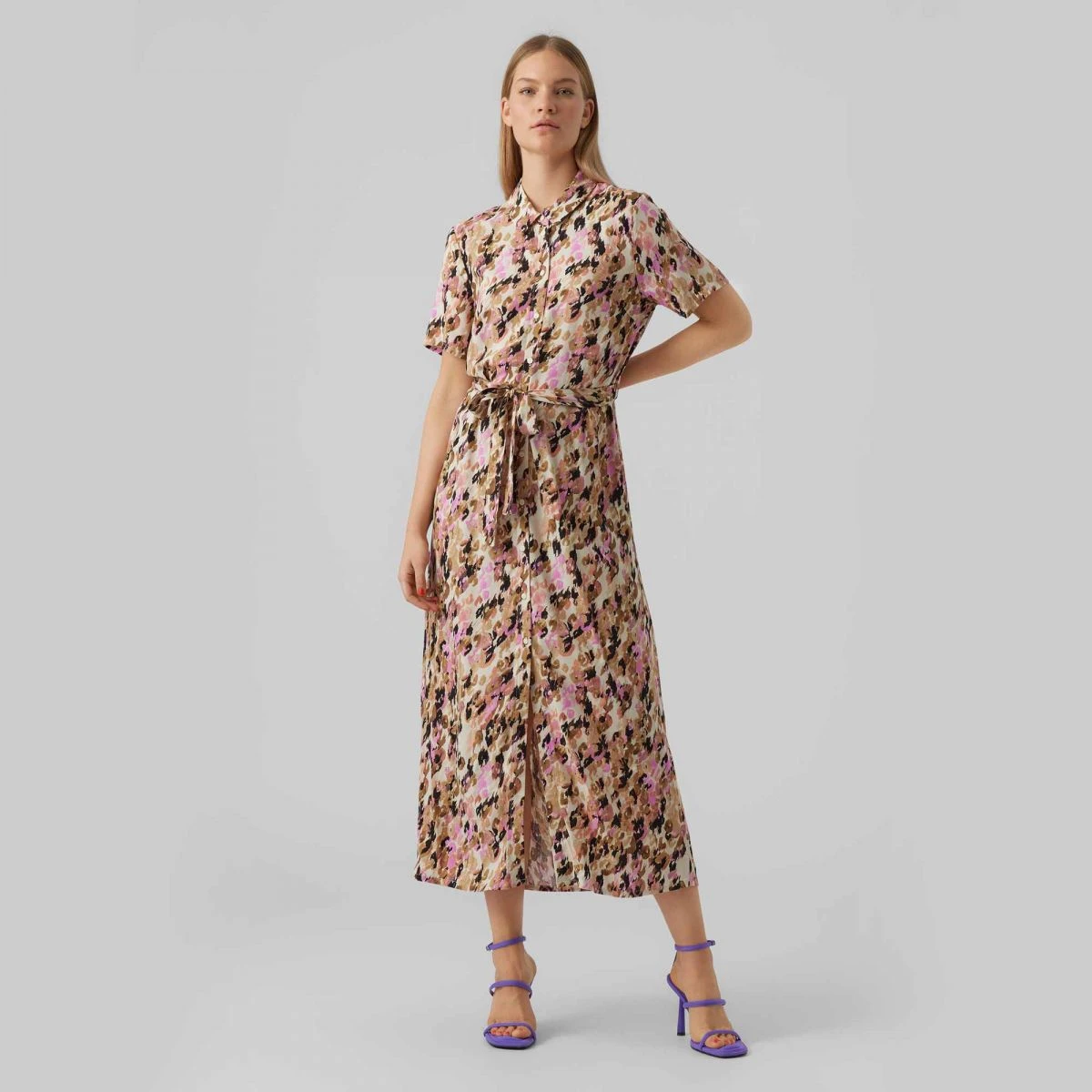 Dégriffstock vous propose cette Robe longue chemise manches courtes avec ceinture taches de peinture easy pour femme de la marque VERO MODA à prix dégriffé.