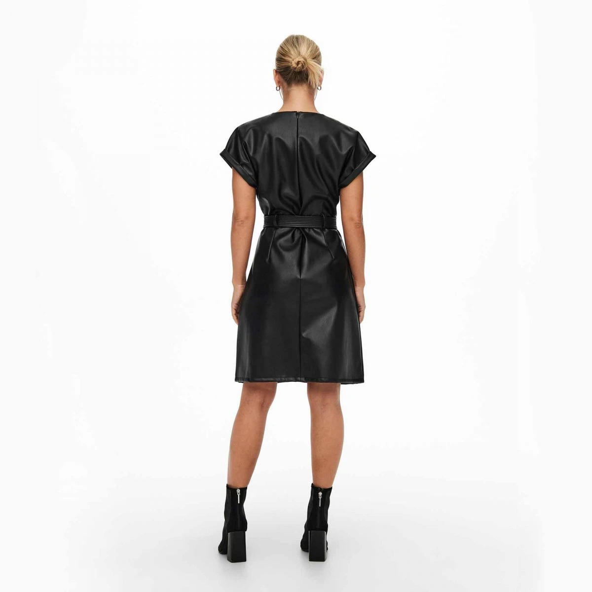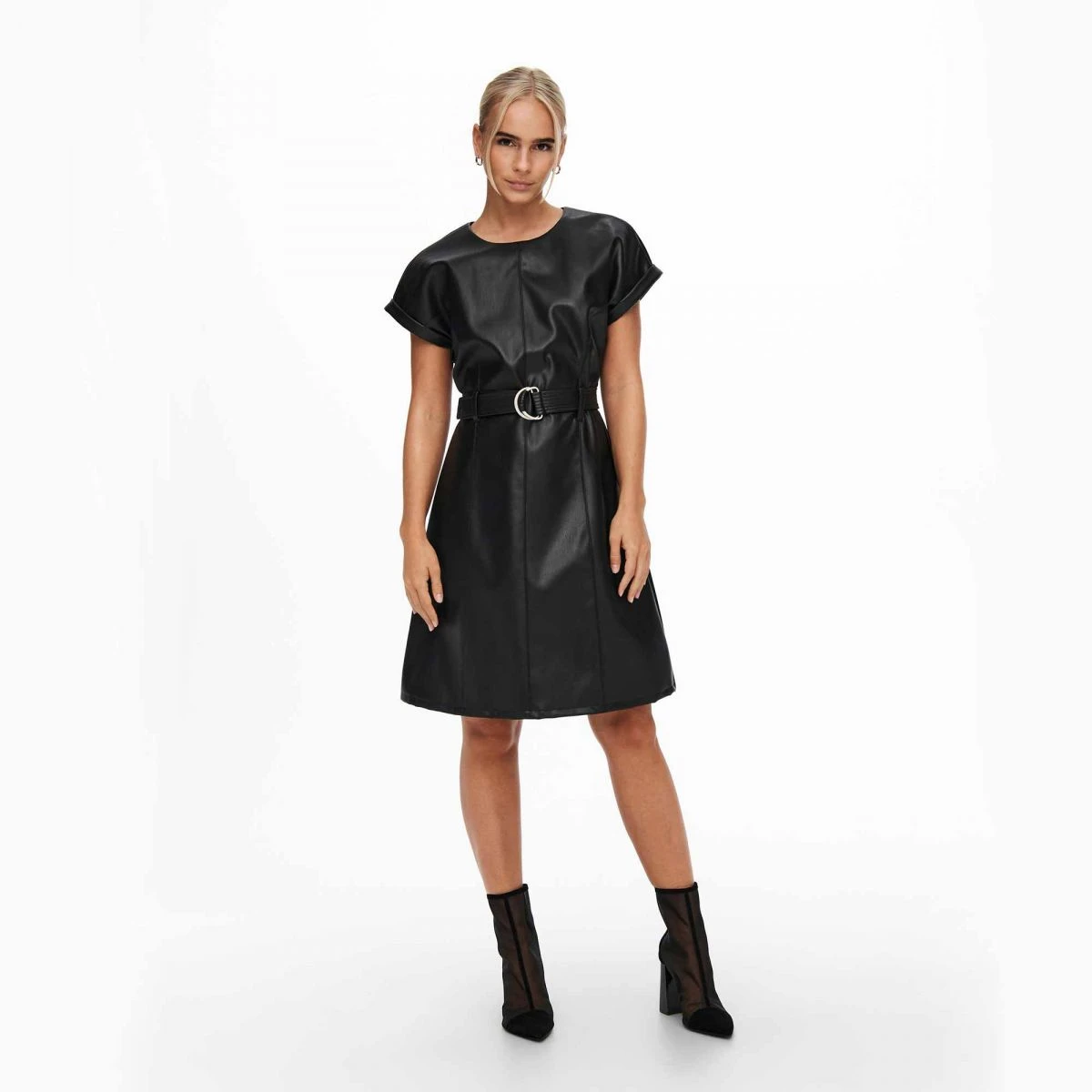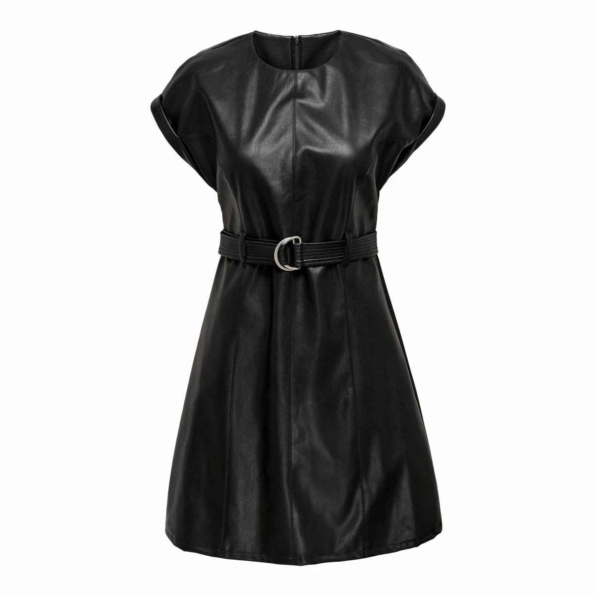 Dégriffstock vous propose cette robe manches courtes bouffante similicuir col rond ceinture pour femme de la marque ONLY à prix dégriffé.