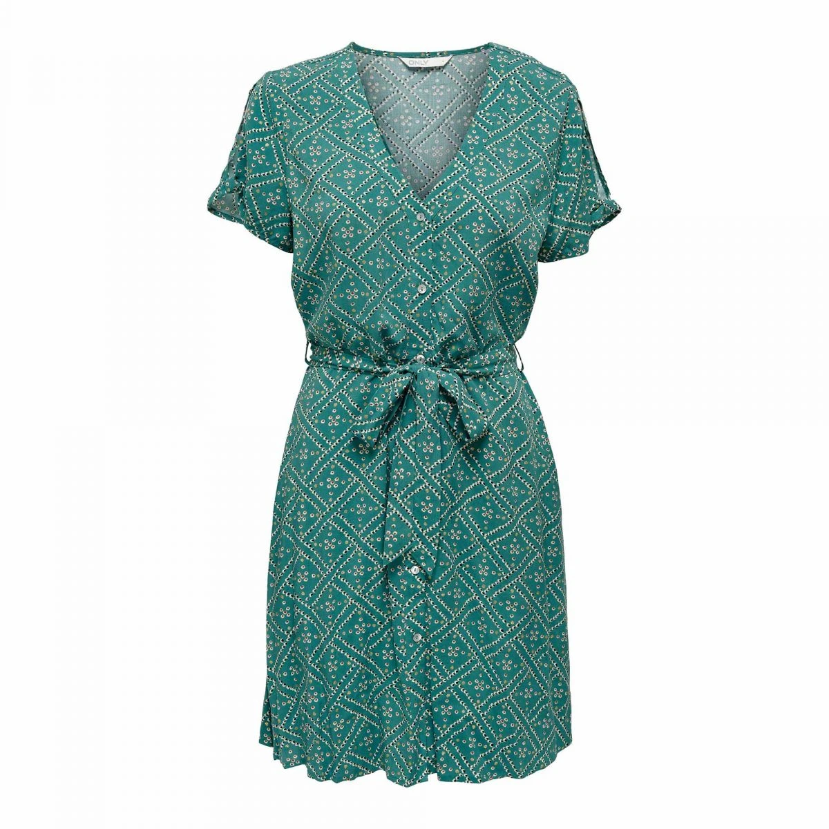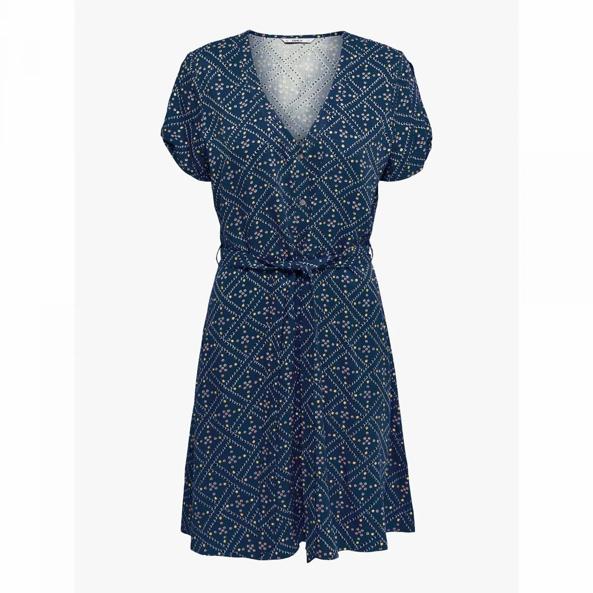 Dégriffstock vous propose cette robe manches courtes ceinture boutons imprimé col v pour femme de la marque ONLY à prix dégriffé.