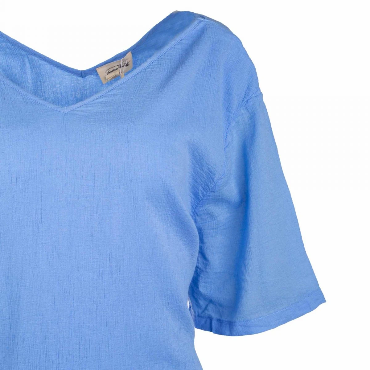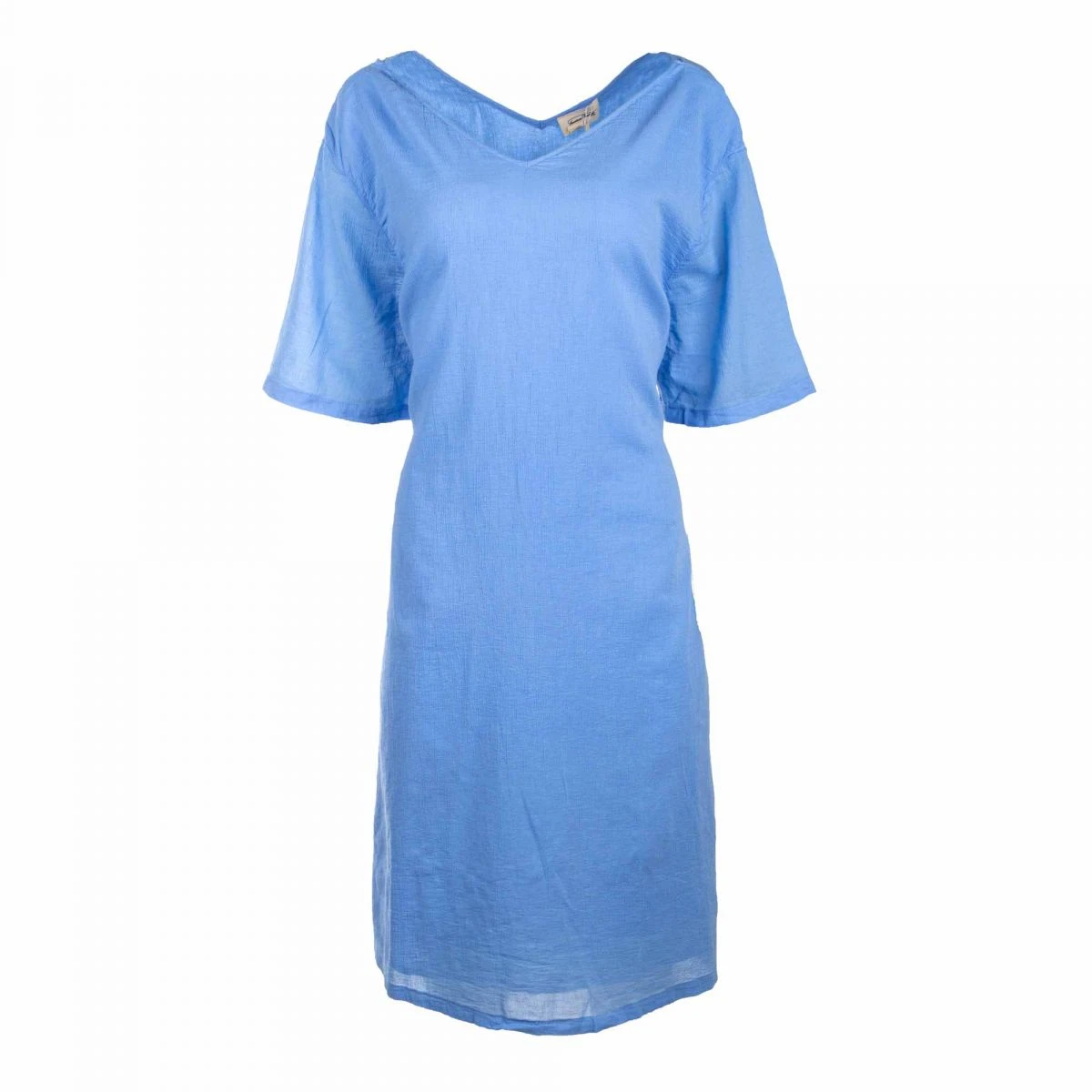 Dégriffstock vous propose cette Robe manches courtes col V uni avec un cordon de serrage dans le dos en coton pour Femme de la marque AMERICAN VINTAGE à prix dégriffé.