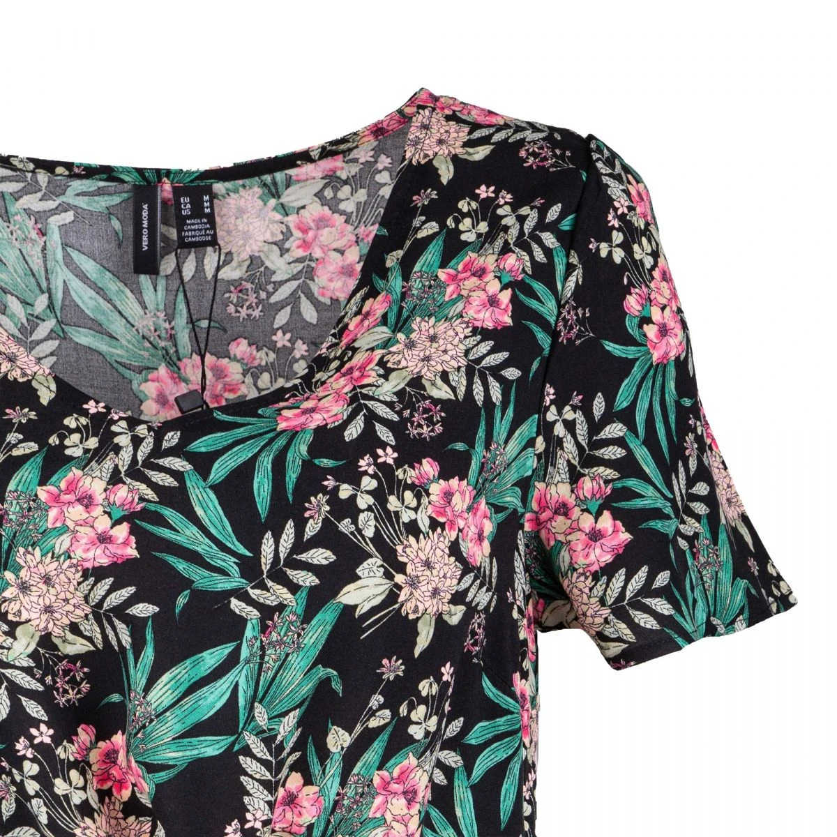 Dégriffstock vous propose cette robe manches courtes noire à fleurs pour femme de la marque VERO MODA à prix dégriffé.