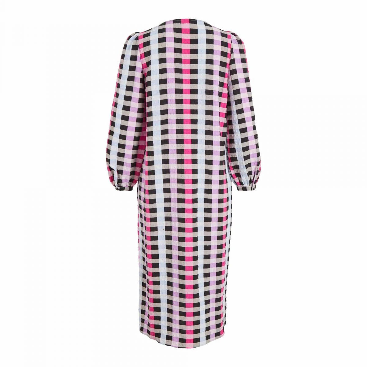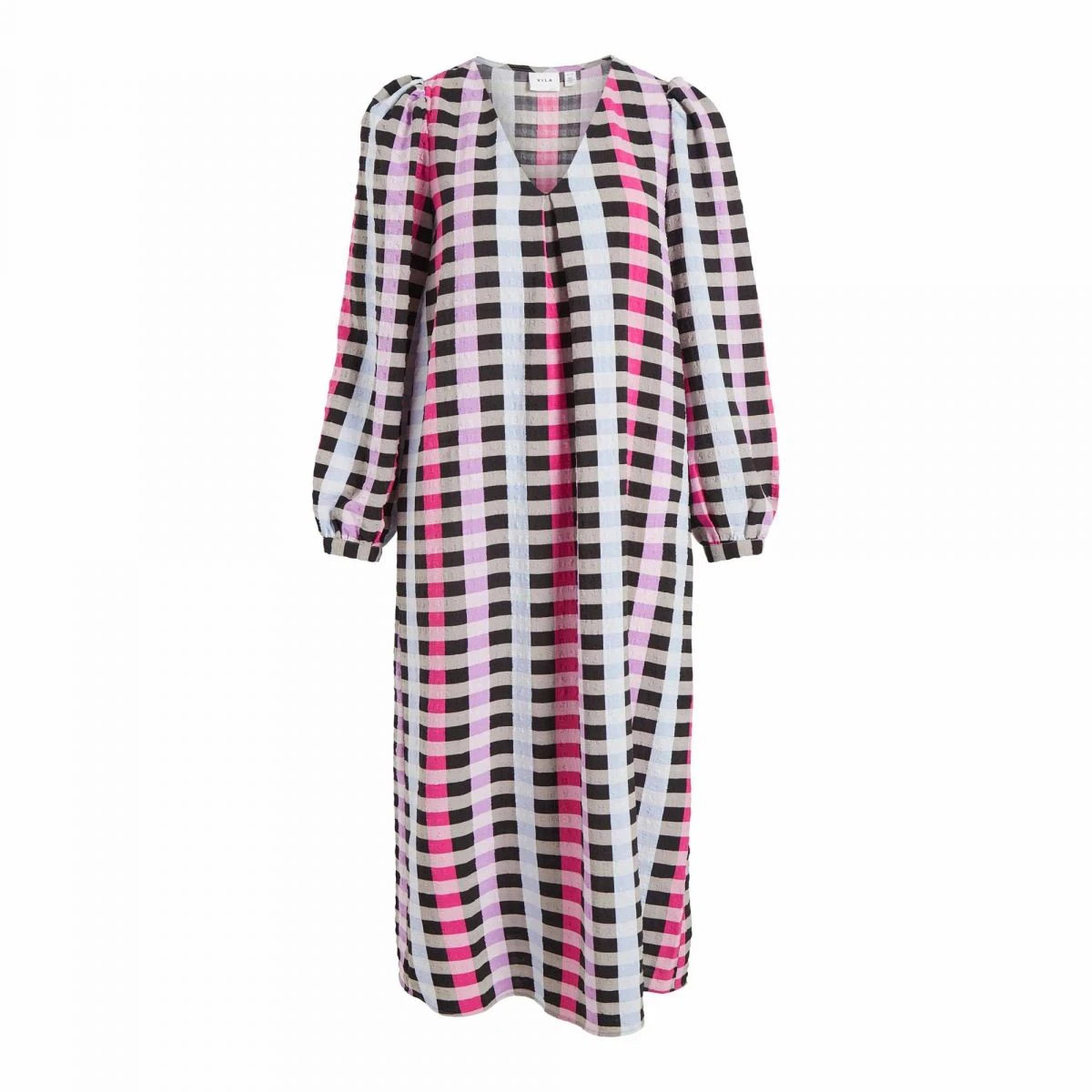 Dégriffstock vous propose cette robe midi droite à carreaux manches ballon stretch pour femme de la marque VILA à prix dégriffé.