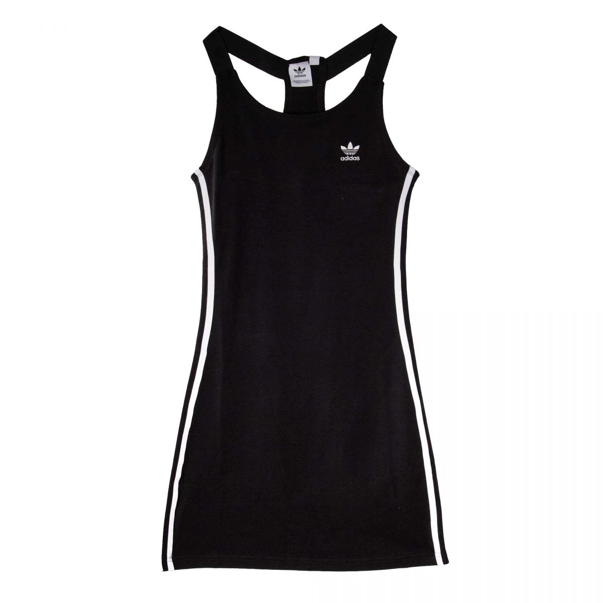 Dégriffstock vous propose cette robe débardeur moulante dos nageur logo bandes côtés coton stretch pour femme de la marque ADIDAS à prix dégriffé.