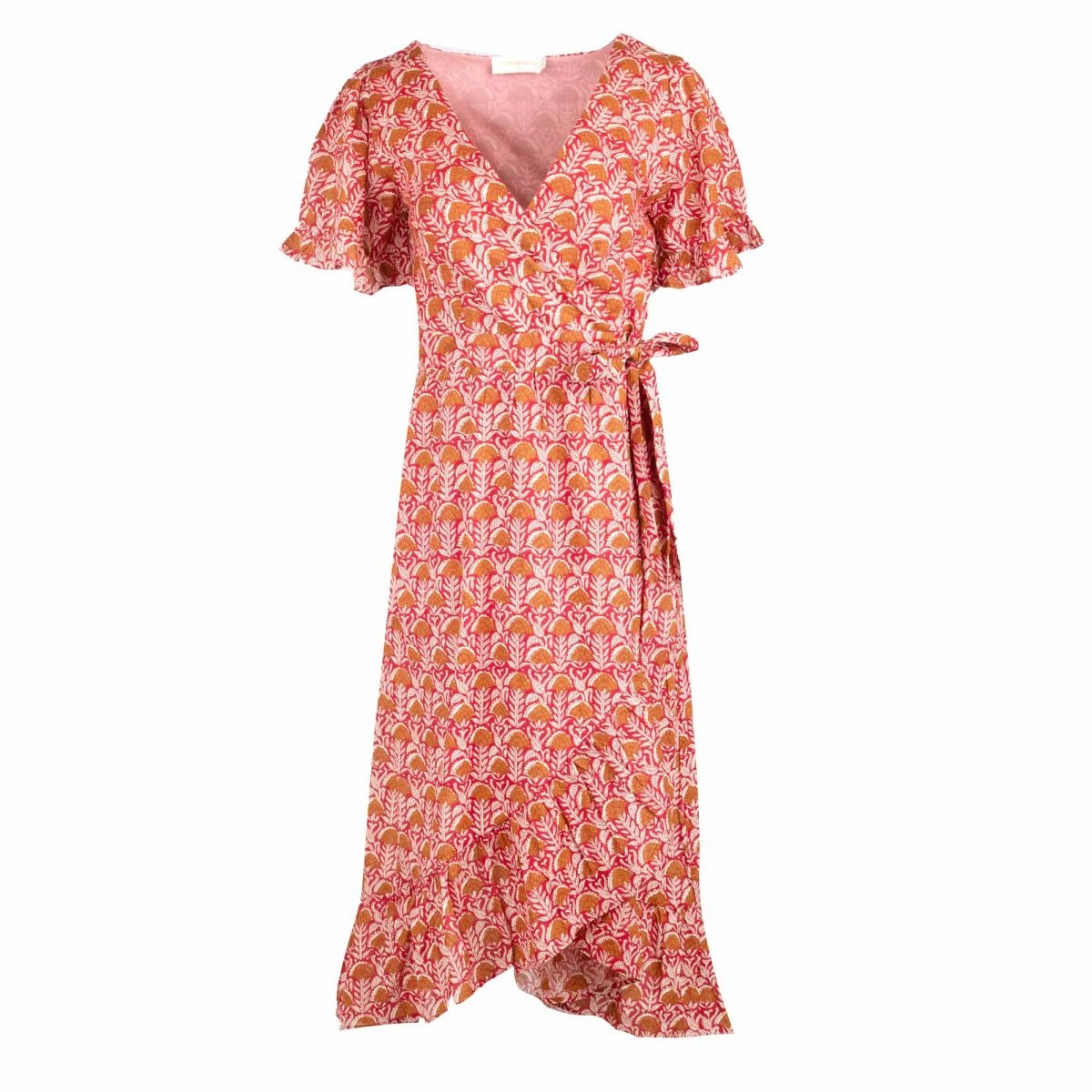 Dégriffstock vous propose cette Robe portefeuille longue manches courtes fleurie rouge fidelia Femme de la marque LA PETITE ETOILE à prix dégriffé.