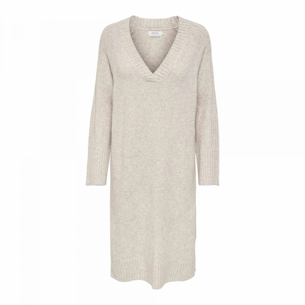 Dégriffstock vous propose cette Robe pull manches longues mi longue col V avec deux fentes Macadamia pour femme de la marque ONLY à prix dégriffé.
